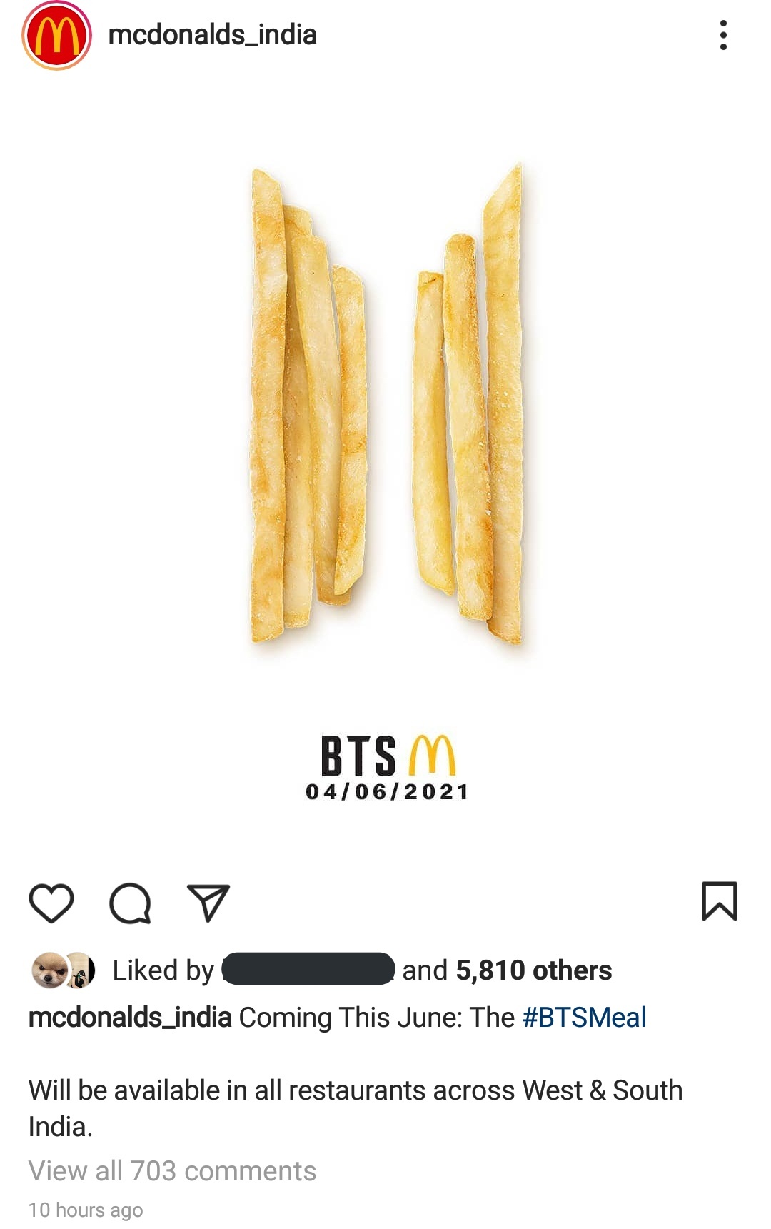 Bangtan India On Twitter Mcdonald S India Posted On Their Ig That The Bts Meal Will Be Available Across All Restaurants Across Of West And South India Bts Bts Twt 방탄소년단 Btsxmcdonalds